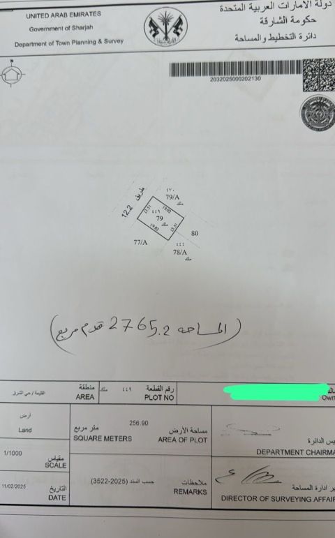 قطعة أرض للبيع في الشارقة منطقة ميسلون مساحة 1900 قدم تصريح أرضي وشقق مطلوب 330 ألف درهم نهائي