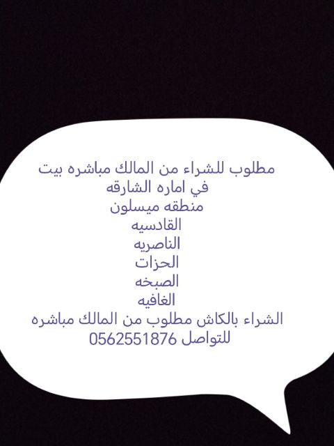 Looking to buy a traditional Arabic house in Sharjah, specifically in the Al Qadisiyah, Al Nasiriyah, or Maysaloon areas. Direct purchase from the owner preferred cash payment only