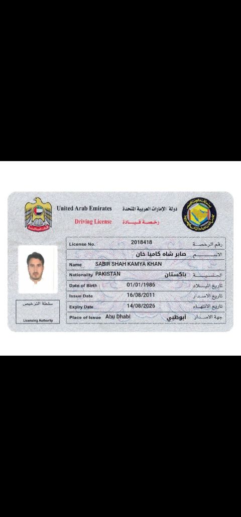 I am sabir Shah from Pakistan looking for light vehicle driver job I have 14 year experience I now all routes in UAE and also use Google maps languages English Arabic Urdu and I join immediately