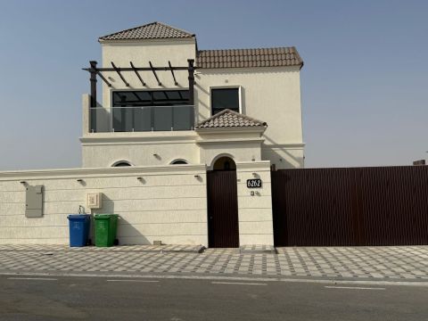 For sale Two - story villa in Sharjah, Al Ruqaiba area (Al Suyoh Suburb) The Villa is 5000 SqFt and is brand new. It features 3 master bedrooms, a large living room, a kitchen, a laundry room, a maid's room, and a storage room. The Villa boasts a super deluxe finish and has a built - up area of