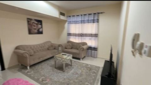 Beautiful furnished living room, first occupancy, asking price AED4800 in Al Taawun, directly on the Dubai exit, close to all services. Two - part apartment, AED1000 refundable, near all amenities. Free dirt parking available behind the building
