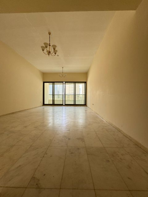 Annual 3BR apartment for rent in Al Taawun near Al Mamzar Park, super deluxe finishing, large balcony, 3 bathrooms, kitchen, built - in wardrobes, including free parking, gym, and swimming pool, price AED60000 - 65000 depending on size, and we also have studios, apartments, shops, labor camps, and warehouses available
