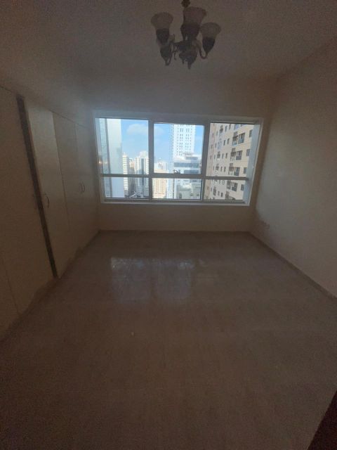 One bedroom, living room, and balcony in Al Taawun, directly on the Dubai exit. Brand new building, first occupancy, with free parking, open and beautiful view. Building is one month old. Spacious area. Security deposit payable in four or six installments