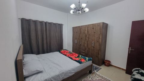 غرفة وصالة للإيجار الشهري في الشارقة التعاون مفروشة فرش كامل قرب مخرج دبي 4500 درهم شامل انترنت