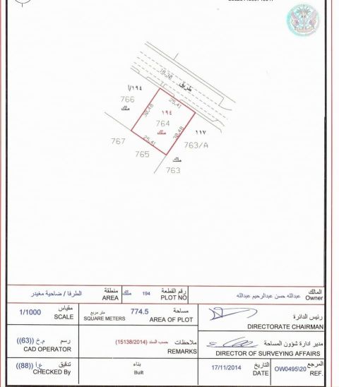 للبيع فيلا طابق أرضي في الشارقة / الطرفا المساحة 14300 قدم الموقع مميز جدا زاوية على شارعين قار، قريبة من الشارع العام وشارع الشيخ محمد بن زايد المواصفات 3 غرف نوم (منها غرفة ماستر) صالة واسعة مجلس مع حمام ومغاسل غرفة طعام مطبخ غرفة خادمة + غرفة سائق حوش واسع مظلة سيارات تتسع ل 6 سيارات التملك خليجي فقط المطلوب 1900000 درهم