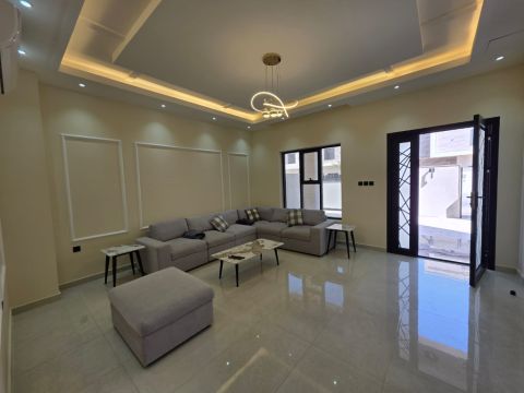 Luxury New Villa for rent - Ajman/ Al Yasmeen 6 Spacious Master Bedrooms Maid’s Room with Private Bathroom Elegant Majlis with Attached Bathroom Large Family Living Room Main Kitchen on the Ground Floor Small Kitchen on the Upper Floor Indoor Parking for 3 - 4 Cars Ready for Immediate Move - In Prime Location in a Quiet Area Close to All Amenities Price AED135000 per Year Modern Design with High