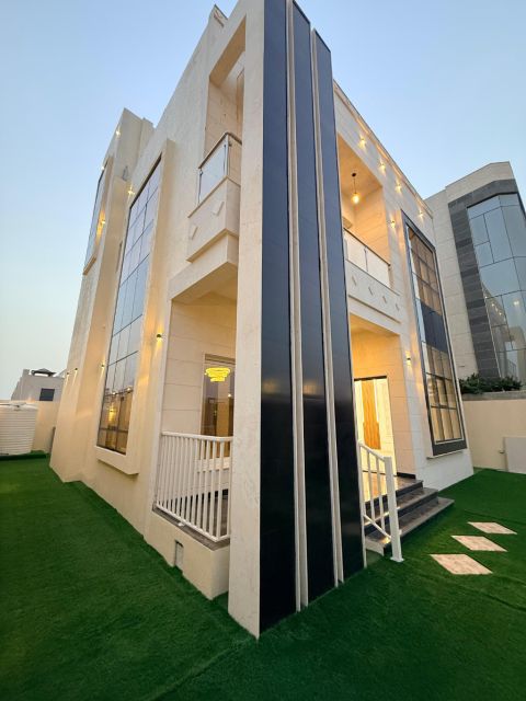 فيلا فاخرة للبيع في منطقة الزاهية - عجمان فيلا زاوية على شارعين بموقع مميز قريبة جدا من المسجد الفيلا جاهزة بالكامل بالكهرباء والماء والمكيفات تتكون من 5 غرف نوم واسعة مجلس وصالة فخمة مطبخ مجهز بالكامل رووف باطلالة جميلة سعر مليون و300 ألف قابل عمر الفيلا سنين