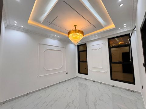 For sale A villa in the Al Zahia area (Ajman) with super deluxe custom finishing, on a tarred street. Specifications Stone - facaded villa, five master bedrooms. Ground floor Mass room with sinks and bathroom. Hall