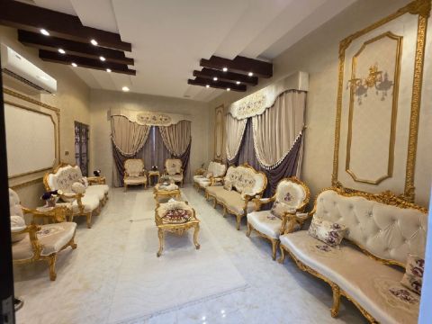 للإيجار فيلا مفروش بمنطقة الزاهية كورنر موقع فنان قريبة من جميع الخدمات مكونة من 3 غرف نوم ماستر ومجلس وصالة ومطبخ كبير وغرفة خادمة وستور ومظلة خارجيه وجلسة داخليه بسعر لقطة للتواصل اتصال