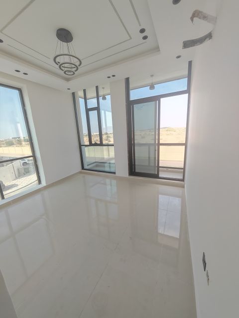 فيلا للبيع في عجمان منطقة الباهية جديدة أول ساكن مع الماي والكهرباء والمكيفات تتكون من ثلاث طوابق عبارة عن 6 غرف نوم ماستر مجلس صالتين ثلاث مطابخ مسبح شلال غرفة عاملة منزلية تكييف مركزي بسعر مناسب جاهزة للسكن