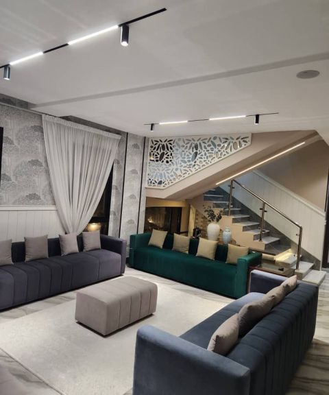 For rent a brand - new villa in Al Bahia area featuring 5 master bedrooms, a Majlis, spacious living room, maid’s room, and 7 luxury bathrooms The Villa boasts high - end finishing and modern design located in a quiet, upscale neighborhood close to schools, mosques, and markets. Includes indoor and outdoor parking and a large space ideal for families seeking comfort and elegance