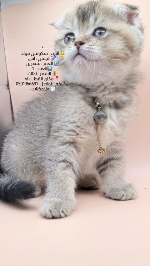 النوع سكوتش فولد الجنس أنثى العمر شهرين العدد 1 السعر 2000 مكان القط shj رقم التواصل ملاحظات
