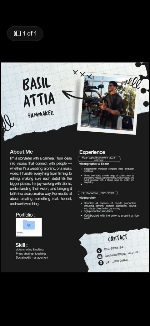 مصور وايديتور محترف، عملت في عدة أماكن منها مناطق حكومية وfreelance، والآن ابحث عن عمل في نفس المجال