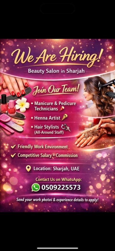 مطلوب بنات للعمل في صالون تجميل في الشارقة نوفر إقامة وسكن وراتب ممتاز. مطلوب بنت الاظافر والرموش. مطلوب بنات للحنة مطلوب بنات للحمام المغربي. مطلوب بنات لتركيب الشعر
