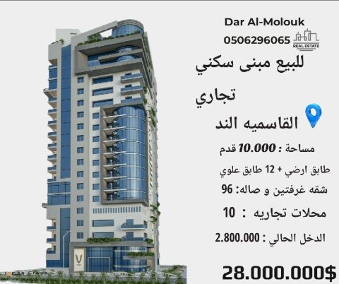A new building, the first inhabitant, G 3, on Academy Street, electricity has not yet entered. The land area is 10000 feet, the building area is 42000 feet, 16 rooms and a hall with three bathrooms, 12 rooms and a hall with a bathroom, 7 mezzanine shops, personal finishing, with decorations inside the rooms, central air conditioning, the required 16 million