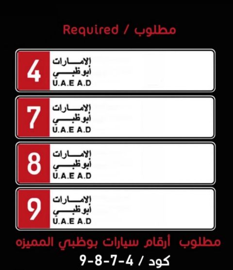 مطلوب شراء رقم سيارة أبوظبي فئة 7 - 8 - 9 - 4 أي رقم مميز نشتري خاص
