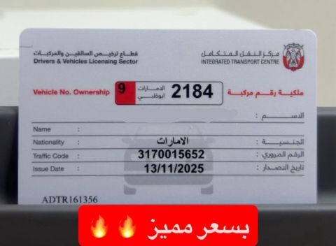 للبيع رقم رباعي امارة أبو ظبي كود 9 بسعر مميز