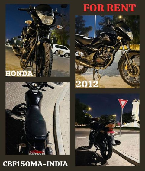 For rent Honda Motorcycle/ We offer a Honda motorcycle (Indian - made) for rent Model 2012 Condition Very good Suitable for daily work and heavy, continuous use Ideal for restaurants Suitable for delivery riders monthly contract available
