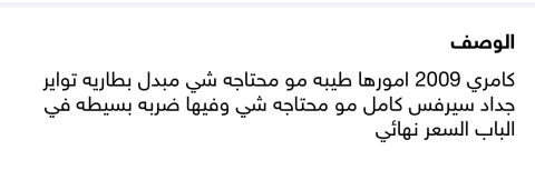 للبيع تويوتا كامري أمريكي موديل 2002 رقم 1 الحالة ممتازة جدا. المواصفات رقم 1 (فئة عالية) شاشة + بدون فتحة سقف + كاميرا خلفية - تحكم عن بعد - بودي نظيف جدا بدون حوادث - المكينة والجير بحالة ممتازة - عداد 342000 كم. السيارة جاهزة للاستخدام ولا تحتاج أي مصاريف