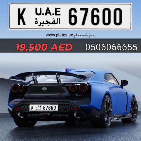 Special car plate code and number ( K 67600) with the new design of plates for the Emirates of Fujairah This number is unused and the offer price is less than the Market. Great opportunity for those who like to be special. Best Regards