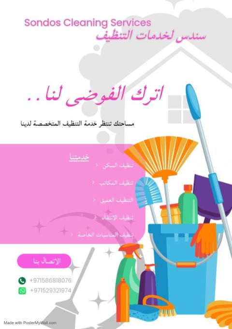 لدينا عقود شهريه أسبوعيه تنظيف مباني بعد التشطيب وفلل ومدارس لدينا عاملات وطباخات مرافقين لكبار السن والاطفال فل تايم وبارت تايم أسعار مميزه نوصلكم أينما كنت