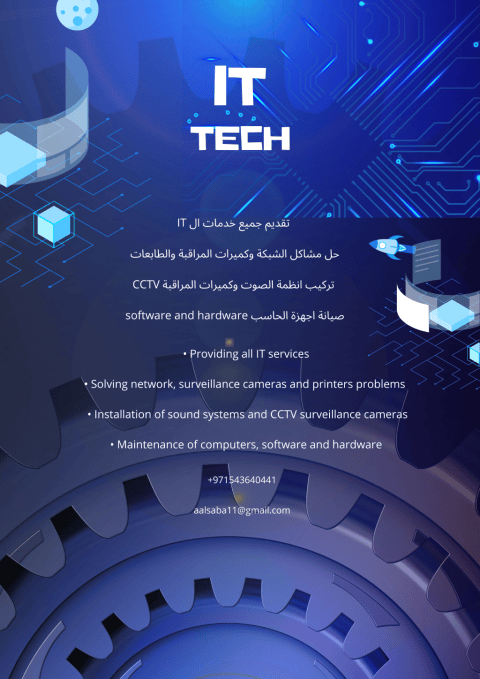 استعداد تام لتقديم جميع خدمات الدعم الفني للمكاتب والشركات software, hardware) تثبيت أنظمة الكمبيوتر وتنزيل البرمجيات انشاء website تركيب أنظمة مراقبة CCTV الأساسية وبرمجيات الحماية من الفيروسات والاختراق حل مشاكل الشبكة والطابعات وأنظمة المراقبة أسعار منافسة ومغرية