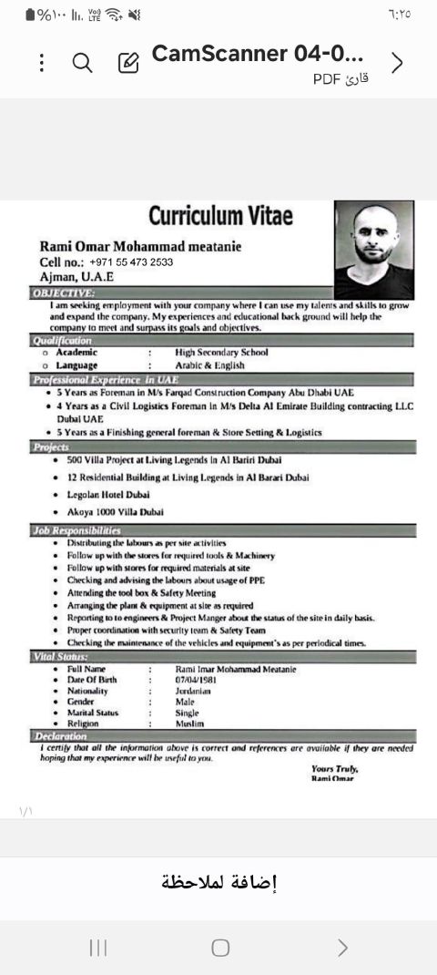 شاب سوري خبرة عشر سنوات بالمقاولات والصيانة العامة يحمل ليسن اماراتي وإقامة قابلة الاعارة ابحث عن عمل مناسب