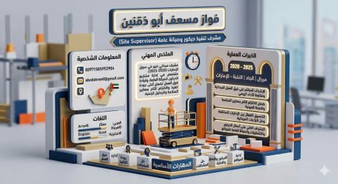 لدي خبرة في الاشراف علي العمال داخل مواقع العمل ومتابعة تنفيذ الأعمال حسب المطلوب والتأكيد من جودة التشطيب وتسليم الأعمال للمسؤولين في الوقت المحدد أجيد تنظيم العمل بين العمال وحل المشاكل داخل المواقع وتحمل ضغط العمل ولدي خبرة في مصر 5 سنوات في مواقع شركة العرب للمقاولات وفي الامارات في خبرة سنتين في مجموعة تروجان القابضة في أبوظبي بالتحديد أجيد الغه الاوردر والانجليزي