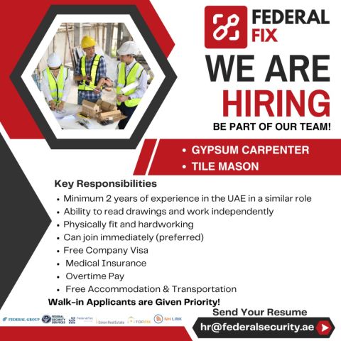 مطلوب معلمين جبسون بورد للعمل في شركة في أبوظبي مصفح الصناعية أن يكون لديها اقامة قابلة للإعارة أو يكون زيارة لعمل إقامة