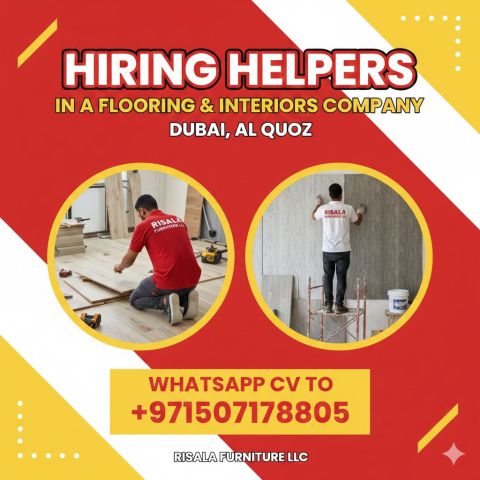 HIRING HELPERS IN A FLOORING AND INTERIORS Company IN Dubai, ALQUOZ FOR HELPING IN INSTALLING FLOORING AND INTERIORS. WhatsApp CV TO THE Number IN THE POST