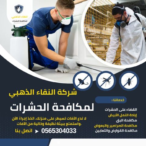 Al - Naqa Al - Dhahabi Pest Control Company provides pest control services, eliminating cockroaches, ants, bed bugs, geckos, snakes, scorpions, termites, and birds. We offer excellent service, competitive prices, high quality, and 24/ 7 availability. We use safe and highly effective materials and provide a 6 - month guarantee
