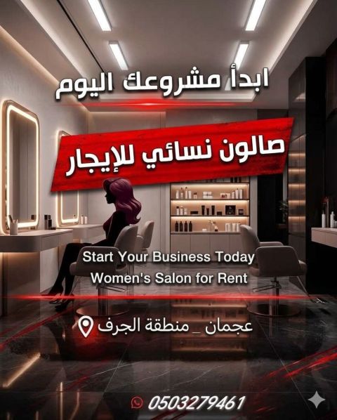 فرصة استثمارية نادرة لا تعوض مع دخول الموسم إيجار صالون نسائي في عجمان موقع مميز مساحة كبيرة الإيجار شهري وعقد يتجدد سنويا مع ضمان الشيكات للاستفسار