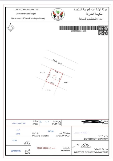 للبيع أراضي تجاري سكني الشارقة ضاحية الرويضات منطقة عزيب مساحة الأرض 2422 قدم مربع تصريح البناء الدور الأرضي محلات + دورين شقق أو مكاتب مسموح تملك حر جميع الجنسيات موقع المشروع مجاور لمشروع مسار ومناطق السيوح ومدينة تلال (وقريب من مول تلال الذي سيتم البدء في بناءه قريبا) وقريب من مسجد الشارقة وشارع الامارات ومطار الشارقة طريقة الدفعات أول دفعة نقدا 266420 درهم والمتبقي على أربع دفعات كل دفعة قيمتها Commercial / Residential