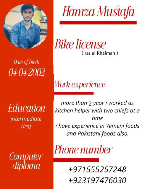 أنا ابحث عن فرصة عامل أنا سائق دراجة نارية لدي رخصة سائق وإقامة ومتواجد بايك ابحث عن عمل في كافية مطعم كافيتريا وأنا علي دراية كاملة بالطريق ابحث عن دوام كامل