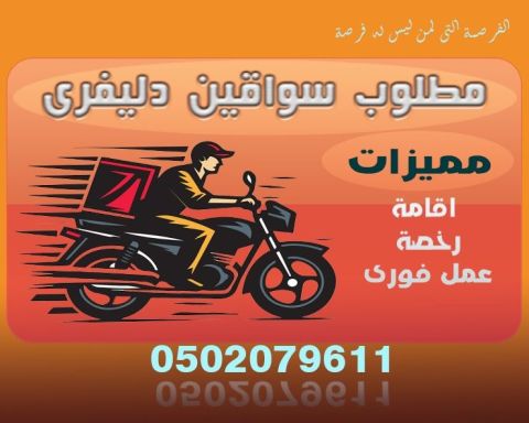 مطلوب سائق دليفري على وجه السرعة ملتزم بمواعيد العمل دوام كامل لمطعم سمك مصفح الصناعية م 10 لديه اقامة قابلة للإعارة لديه رخصة قيادة دراجة نارية يكون متفرغ للعمل الراتب 2200 سكن الوجبات من المطعم