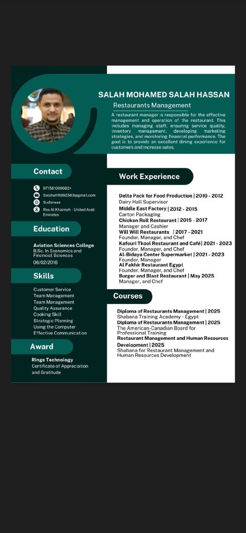 Motivated and adaptable professional skilled in operations, customer service, graphic design, data entry, agricultural engineering, and bodybuilding coaching. Open to any full time role offering AED5000 + with an employment visa. Ready to join immediately and add value