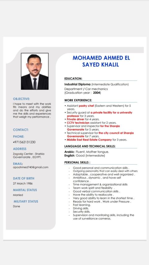 Driver with a UAE Driving License and a Bachelor’s in Business Administration, with 17 years of experience on UAE roads and strong knowledge of all routes. Worked with Abu Dhabi Municipality - Farmers Service Center, Al Suwaidi Engineering Consultancy, Reef Emirates Agriculture, and a delivery company. 38 years old, born in the UAE, seeking a suitable job