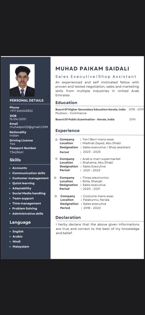 I am looking for opportunities as driver cum office/ accounts assistant in prestigious companies. I do have a vast experience related to FnB, cashier, stores and receiving, auditing too, 10 years in Jumeira Beech Hotel. As a limousine driver for the last 5 years, knowledge about UAE traffic laws, locations especially GPS usage. Graduated in commerce ( B com) IATA std. HACCP too. join immediately
