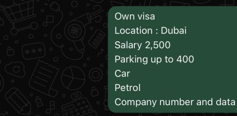With own visa We’ re Hiring a Driver in the United Arab Emirates Dubai, Business Bay. Looking for a reliable driver living in Dubai to move staff between locations. No sales or delivery apps, just transport. We provide visa, car, petrol, parking allowance, and salary. Must have a valid UAE driving license and be responsible. Interested Contact us to apply