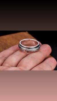 خاتم أنيق اطار داخلي واطار خارجي متحرك نقشة فيرزاتشي مقاوم للتوتر مطلي بالفضة متوفر بمقاسات مختلفة السعر 25 درهم