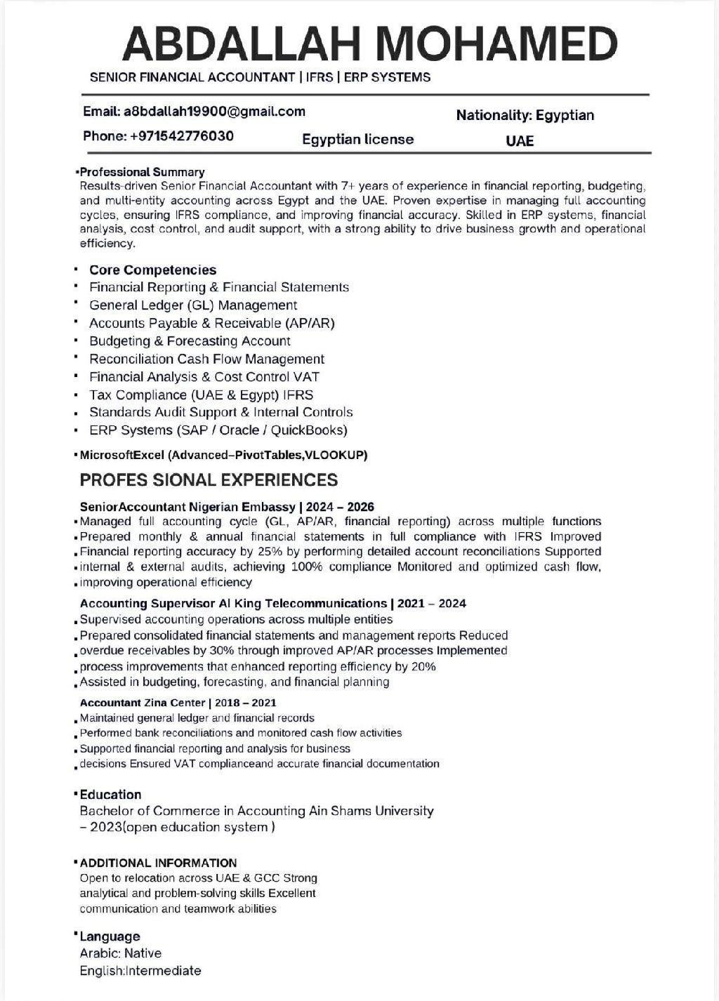 محاسب خبرة أكثر من 7 سنين وأدور على عمل في دولة الامارات
