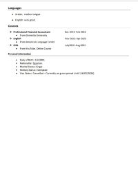 الاسم محمد أشرف الخبرة محاسب في شركات المقاولات - سنة خبرة داخل الامارات الموقع دبي - الامارات رقم التواصل 0588311291 الايميل نبذة عني محاسب حاصل على بكالوريوس تجارة، وعندي خبرة عملية في الحسابات العامة وحسابات المقاولات، وتشمل شغلي اليومي تسجيل القيود اليومية وأقفال الحسابات الشهرية متابعة الذمم المدينة والدائنة مراجعة فواتير الموردين والمقاولين وتحليل التكاليف
