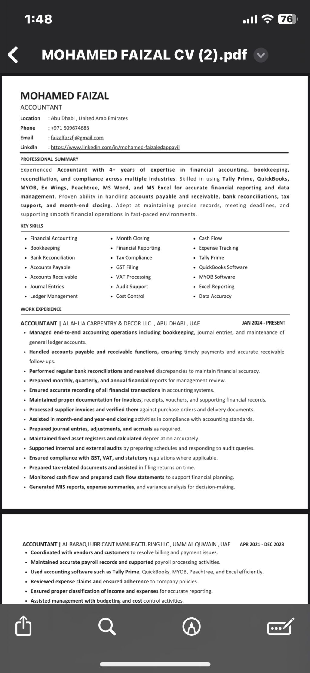 Am working in Abu Dhabi I want to change from current place I have good accounts background and more than 4 years experience