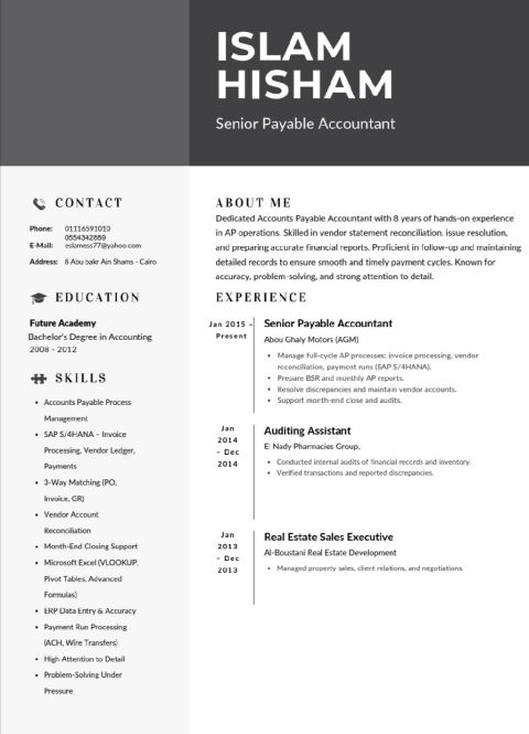 Experienced Accountant with 8 Years of Experience Seeking Job in the UAE Professional accountant with 8 years of experience in accounting and financial management, including financial reporting and account monitoring with high accuracy. Proficient in accounting software and Excel, seeking a suitable opportunity in a reputable company in the UAE to contribute my expertise in improving financial