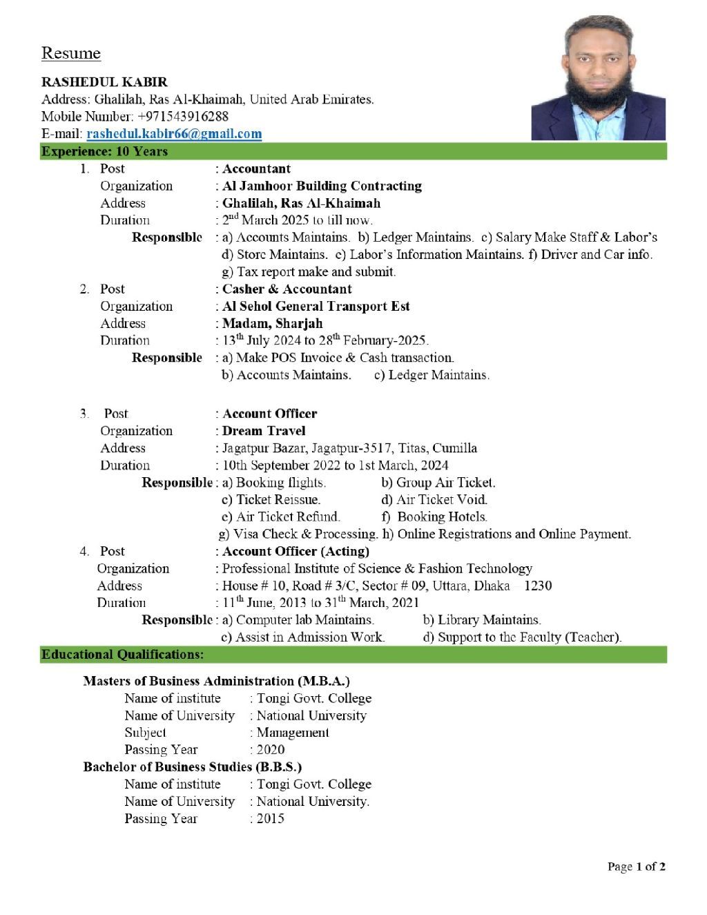 Working as an Accountant in a construction company (2 months left for visa) I have 10 + years of total experience (UAE & Bangladesh) with strong skills in MS Excel and accounting software. I am looking for a ideal company. inbox me for more info