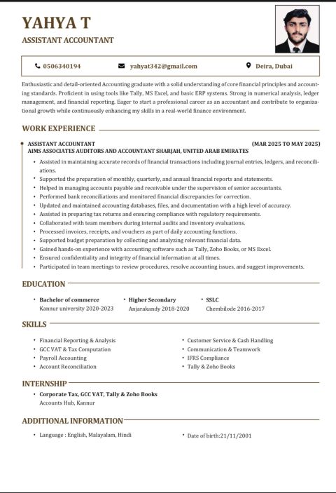 Am shamsudheen am from Kerala India ( I have 1 year experience in Dubai) I am looking for accounts job. would you be Haring at this moment I come with background of accounts payable accounts receivable executive and I have 6 years experience and I am skilled in zoho, SAPB 1, Tally ERP software Invoice processing, Managing accounts, Analytical skills, Bank reconciliation Bookkeeping et