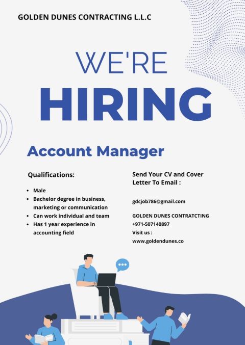 We are Hiring Accounts Manager For our Company, Direct Hiring, Company Provide Visa, Medical Insurance, and other benefits, Urgent Hiring