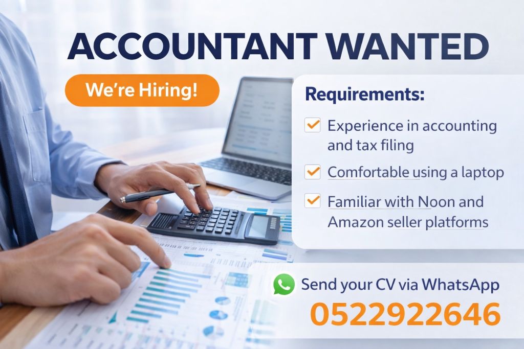 We are looking for an accountant to join our team. Location Al Deira, Dubai. Requirements Proven experience in accounting and tax filing - Must be comfortable using a laptop and basic computer tools - Experience with Noon or Amazon seller platforms is well preferred We are looking for someone reliable, organized, and detail - oriented. Send CV via