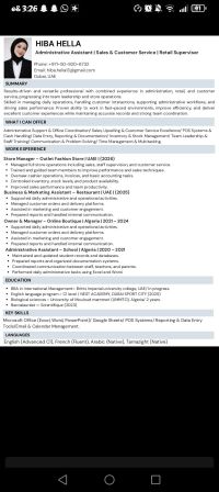 مساعدة ادارية محترفة لدي خبرة في التنسيق الاداري وإدارة الأعمال اليومية داخل الامارات. اجادة Microsoft Office وادخال البيانات مهارات تواصل وتنظيم عالية القدرة على العمل تحت الضغط بكفاءة دبي متاحة للعمل فورا