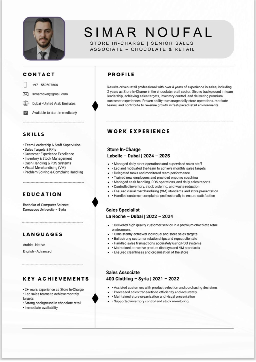 I am writing to express my interest in joining your team. With over four years of experience in retail sales, including two years as a Store In - Charge within the premium chocolate sector, I bring strong leadership skills and a proven ability to achieve sales targets while delivering excellent customer experiences